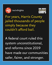 The consent agreement was seen as a landmark step toward bail reform, with Harris County becoming a model for other jurisdictions in Texas and across the United States.