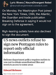 The refusal by mainstream media outlets has already drawn comment from several prominent defense and journalism watchdogs. “The Pentagon’s request is a direct attempt to silence coverage of U.S. military action,” said Alex Thompson, executive director of the Media Freedom Center. “Such gag orders are incompatible with the transparency that a democratic society requires, especially when the public is paying the price for these operations.”
