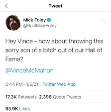 - Mick Foley publicly criticized Trump’s latest tweet as hateful, calling out WWE for its silence.
